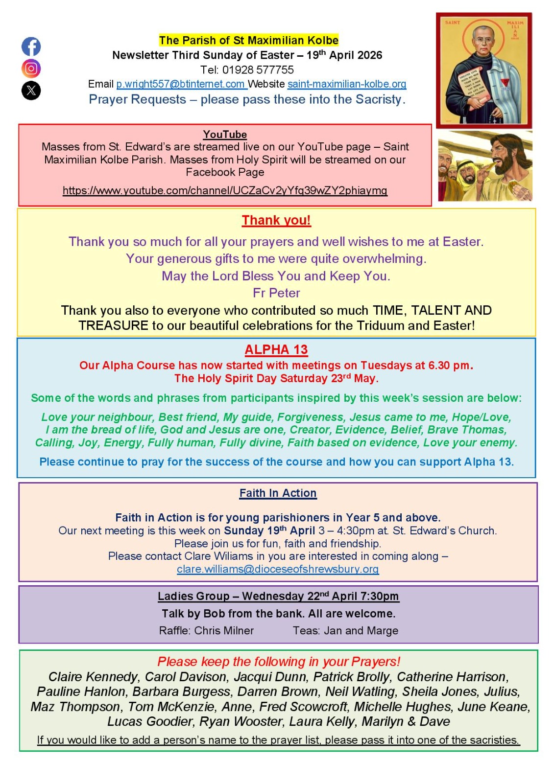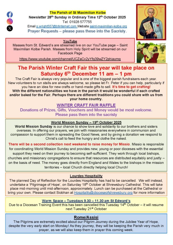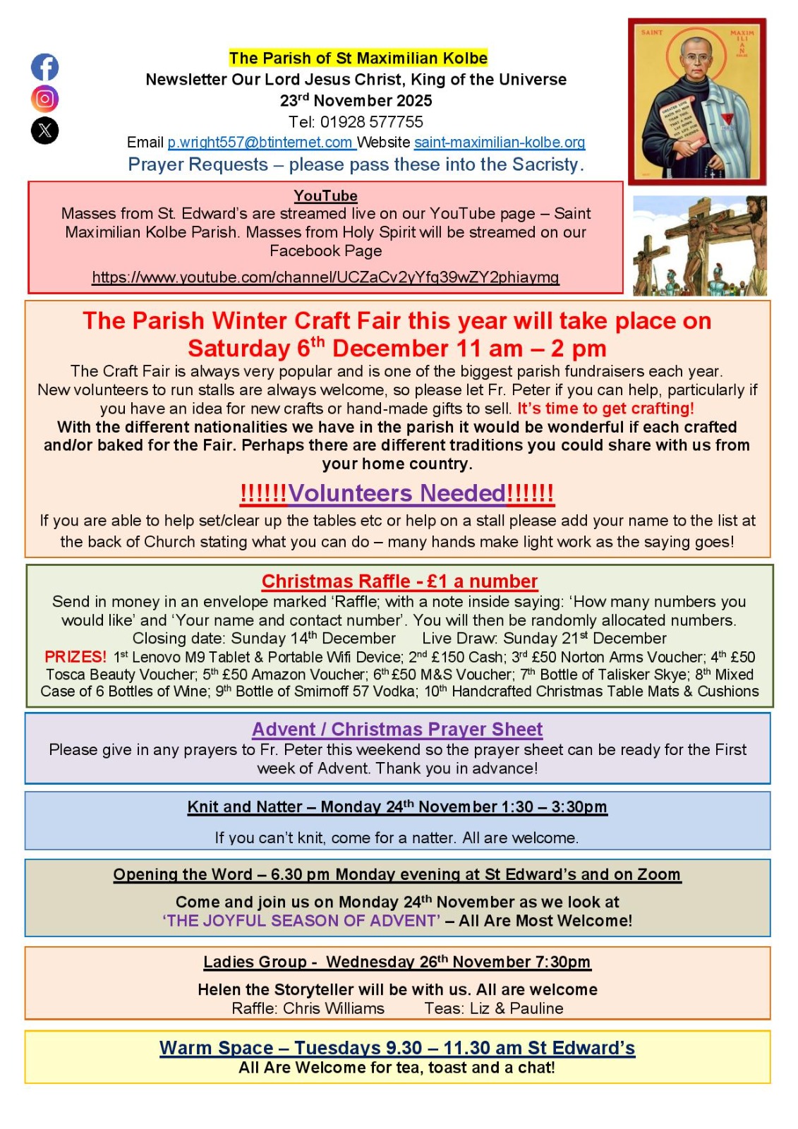 Weekly Newsletter Saint Maximilian Kolbe Newsletter Covering the churches of Saint Edward and Holy Spirit Our Weekly Newsletter