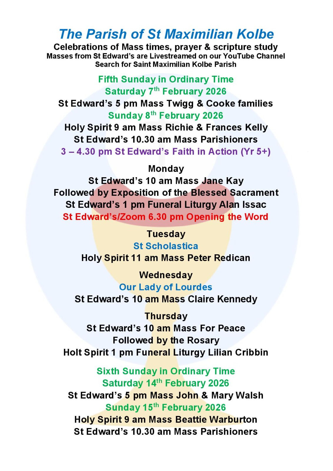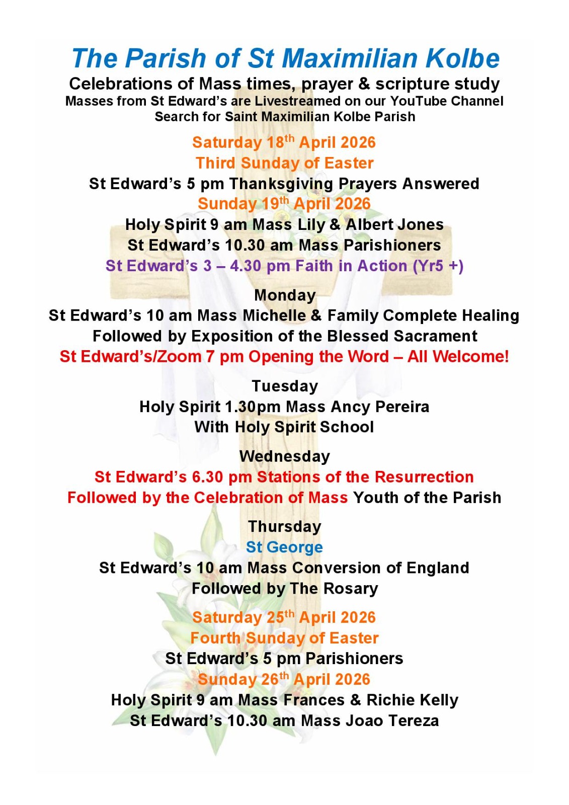 Mass Times Our Weekly Newsletter can be found here.Masses are live-streamed on Facebook.Recorded Masses are available on YouTube,